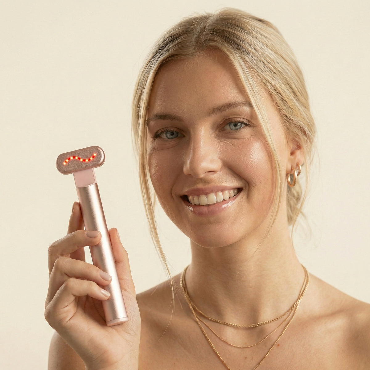 Poczuj moc 4 zaawansowanych technologii w każdym użyciu. To urządzenie to nie tylko pielęgnacja – to chwila oddechu, podczas której Twoja skóra doświadcza profesjonalnej regeneracji. Zanurz się w rytuale, który wspiera ujędrnienie, redukcję zmarszczek i przywraca skórze młody, promienny wygląd – wszystko w zaledwie 5 minut dziennie.