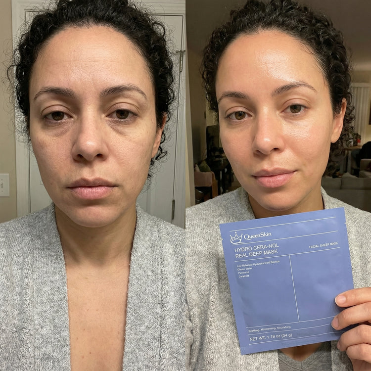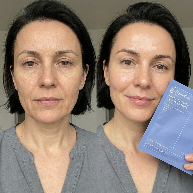 Wyniki mogą się różnić w zależności od indywidualnych cech skóry, wieku, trybu życia oraz regularności stosowania produktu. Zdjęcia zostały wykonane przez sztuczną inteligencję i nie pokazują prawdziwych wyników kobiet, jest to jedynie wizualizacja możliwych efektów które może przynieść korzystanie z maski. Efekty widoczne na zdjęciach nie są gwarantowane dla każdego użytkownika. Aby uzyskać optymalne rezultaty, zalecamy regularne stosowanie masek zgodnie z instrukcją.