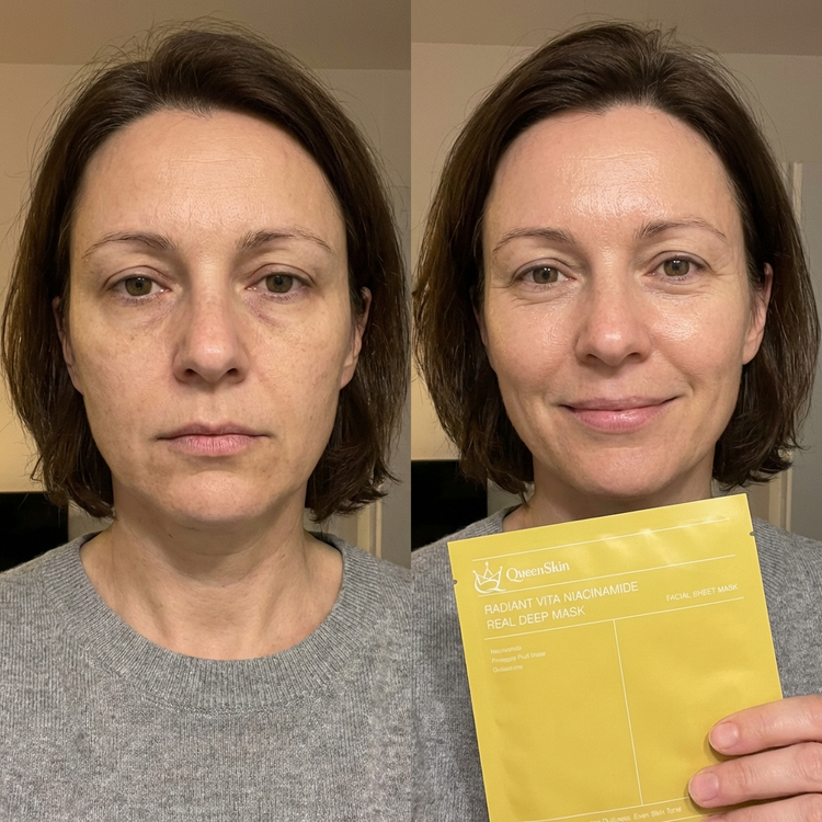 Wyniki mogą się różnić w zależności od indywidualnych cech skóry, wieku, trybu życia oraz regularności stosowania produktu. Zdjęcia zostały wykonane przez sztuczną inteligencję i nie pokazują prawdziwych wyników kobiet, jest to jedynie wizualizacja możliwych efektów które może przynieść korzystanie z maski. Efekty widoczne na zdjęciach nie są gwarantowane dla każdego użytkownika. Aby uzyskać optymalne rezultaty, zalecamy regularne stosowanie masek zgodnie z instrukcją.